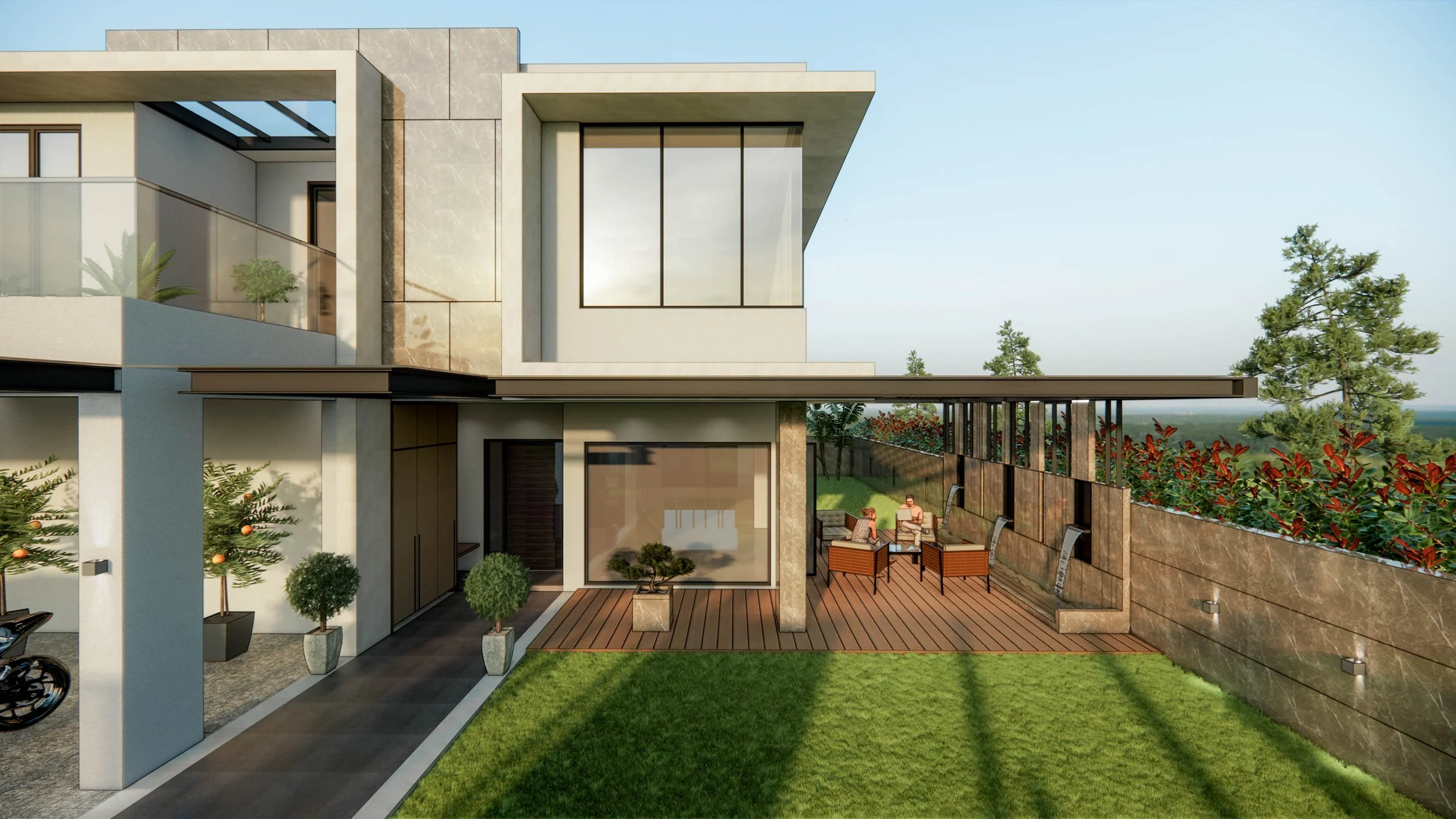 This home features a clean-lined design with beautiful natural stone work on the exterior. Facing south, this home catches the morning sun and over looks a lush